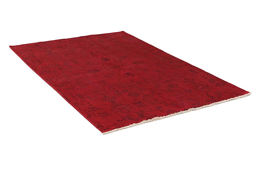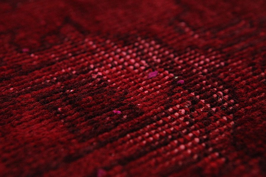 Each rug is carefully selected and subjected to a unique process of reducing the pile to a minimum and neutralizing the color before to be painted in a new exciting color.