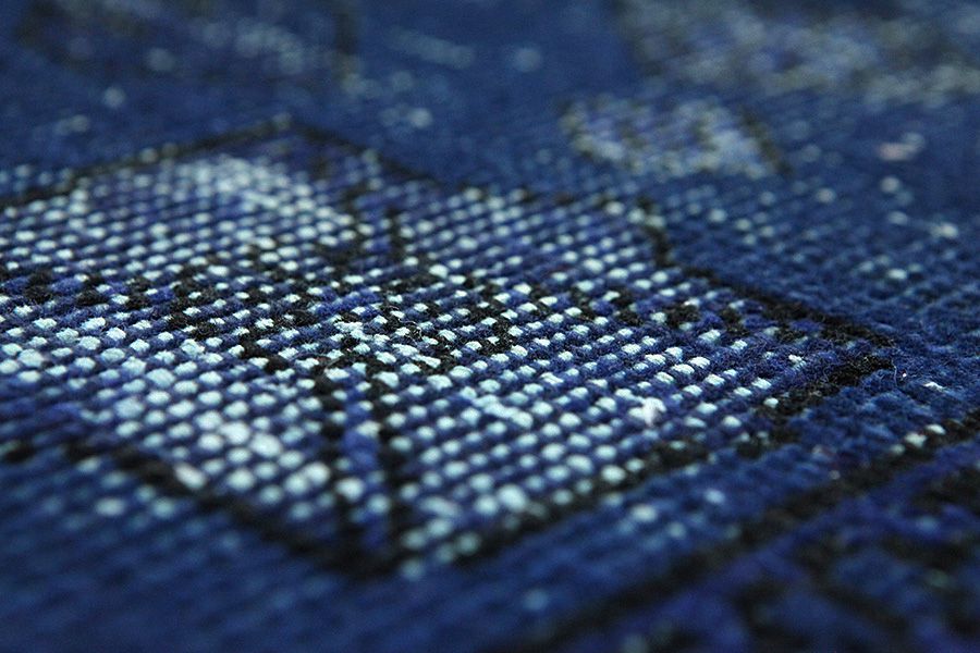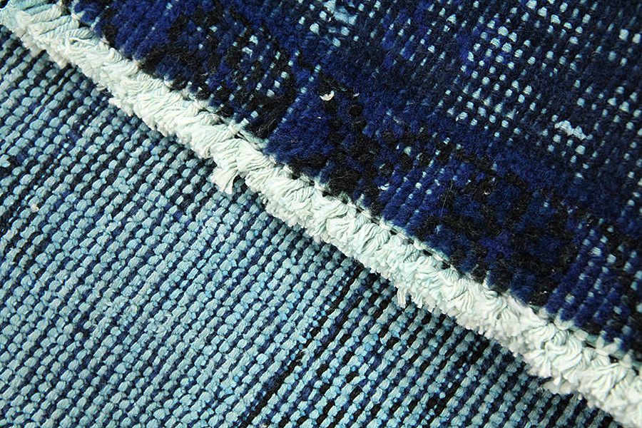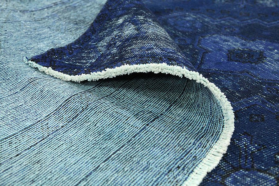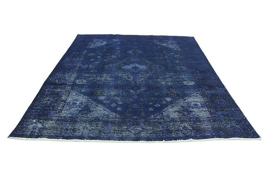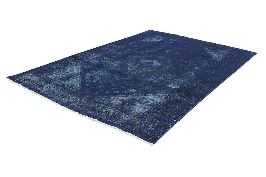 Vintage rugs by Carpetu2 are produced from older Persian handmade rugs aged at least 40-60 years with a long history. Each rug is carefully selected and subjected to a unique process of reducing the pile to a minimum and neutralizing the color before to be painted in a new exciting color. The result is a combination of the old with the new, the traditional rug design combined with a modern retro style. Vintage rugs can lose some of their original features and become even more unique in their appearance over time in modern new colors and old unique designs.