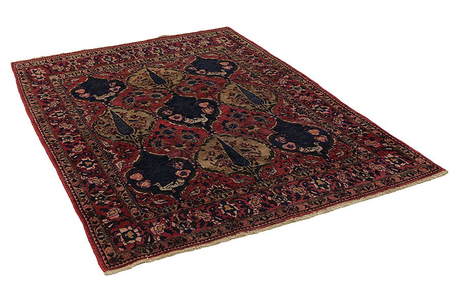 In the mountains Zagros, west of the city of Isfahan, around the town of Shahr-e-Kurd, live the nomads Bakhtiar. Their rugs are known for the design with various repeating squares in which flowers and animals are depicted. For this reason the design is called "garden"(Khesti). Their rugs are very durable with a dense weave and very good quality Persian wool coming from sheep grazing at a high altitude. The best Bakhtiari rugs with highest knot density are often called Bibibaff.