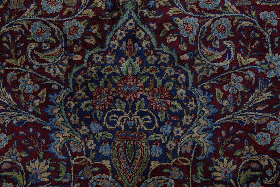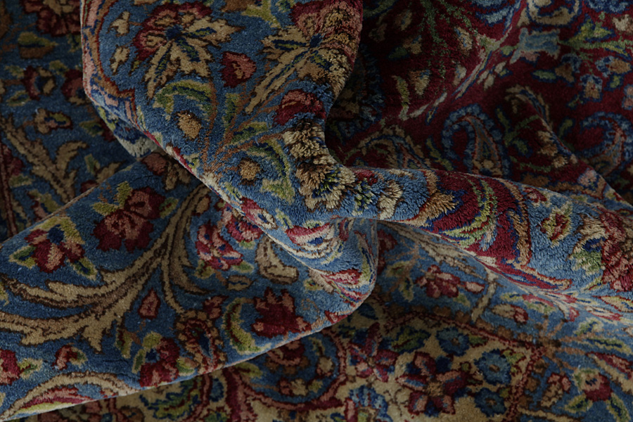 Rug weaving, an old tradition in Kerman, is one of the main industries of the city. The rugs produced in the city are renowned internationally. The oldest rug discovered in Kerman dates back 500 years, demonstrating the durabillity and quality of the rugs woven there. Also manufactured as in older times are other textile products made of cotton or wool, like shawls and delicate fabrics. Characteristic of Kerman rugs are the bright colours and the plentiness of beautiful flowers with garlands and medallions. The wool in Kerman is of very good quality with greasiness which makes it very bright.