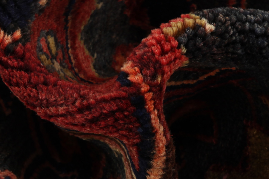 Abrash: Due to the different amount of grease in the wool and the added salt during the process of dyeing, the wool has got a varying colour absorbance. This is not very visible before weaving. During the weaving though, lines of the same colour are formed in the rug. This is called Abrash (which in Farsi means little cloud) and it shows that the wool was not manufactured using chemical means and marks the naturalness and authenticity of the rugs. Examples