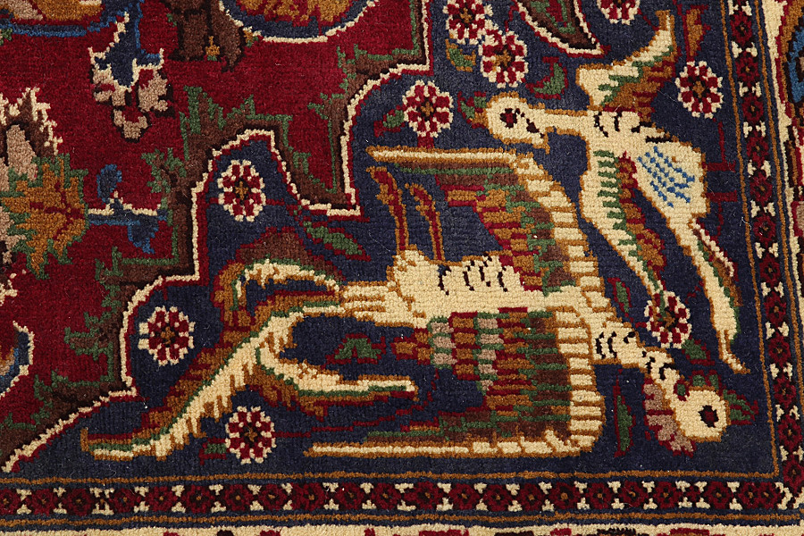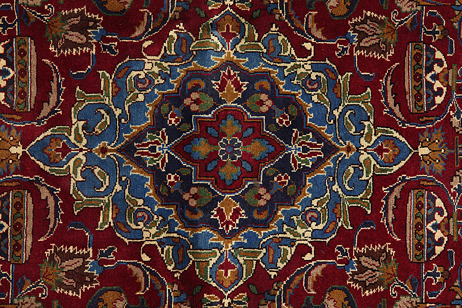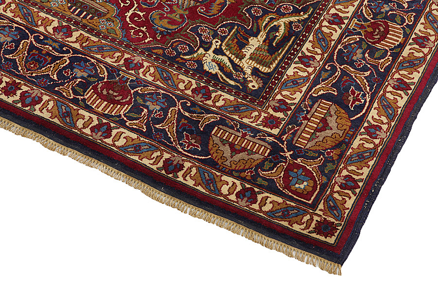 Mashad is known as the City of Ferdowsi the poet who wrote "Shahnameh", which is considered to be the national epic of Iran. It is also famous for its excellent quality wool. The old Mashad rugs were very good and had fine weave. For a time, due to the high manufacturing cost, quality did not meet the requirements of buyers and the demand had declined significantly. This happened until the mid-1950, when a significant improvement began. Their rugs started to look like works of art, with beautiful, tasteful, fine and detailed drawings. A great variety of flowers, "mir I botah", beautiful medallions and borders with garlands adorn Mashad rugs. The colours are almost always herbal. In Chorasan there are many krapprot which give a very sweet red.The Indigo blue is also the second of the main colours used. The knots used are senneh (Persian knot) and ghiordes (Turkish knot). The Mashad rugs called Turkbafs, in which the ghiordes knot is used, are of very high quality and aesthetics.