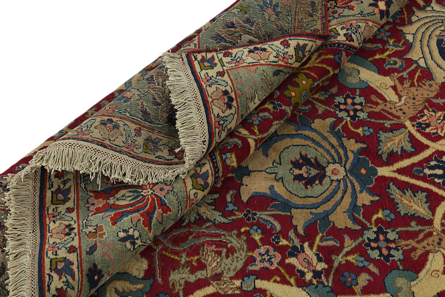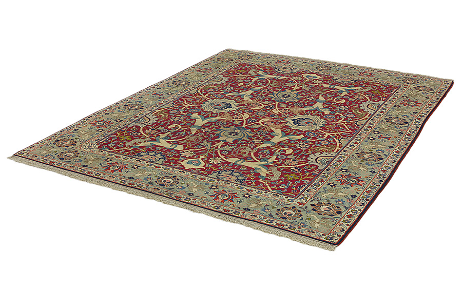 The city of Tabriz is the capital of Azerbaijan province in Northwestern Iran. Tabriz supplied the West with masterpieces that were made by renowned and very capable weavers. Their high quality of Tabriz rugs made them renowned in world markets. Many workshops where created where hand-woven rugs with very high density knots and high quality materials where woven. Silk and fine quality wool establish these rugs as very high class. No other city in Persia produced such large quantity or variety of rugs. With or without a medallion, their designs are full of imagination and individuality. Flowers, scenes, stanzas of poems often decorate them. Their predominant colours are beige, blue and red.