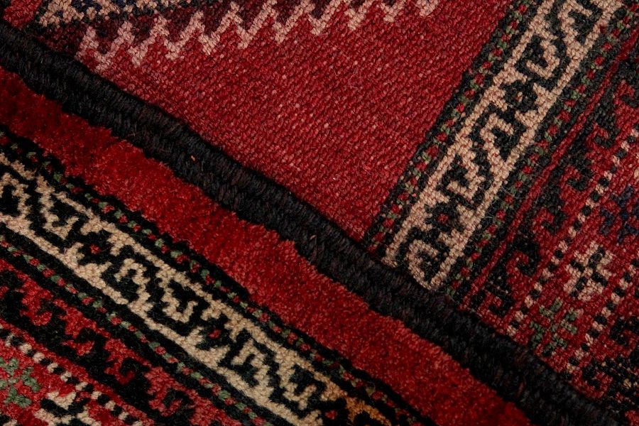 The Turkaman rugs are being woven in several regions of Uzbekistan, Turkmenistan, eastern Turkestan, Afghanistan and Belutschistan. Basjir, Salor, Τekke-Bochara, Jolam-Bocharaband, Ersar, Tjaudor and Yomut rugs, which are characteristicexamples of the Bokhara techniques, belong to the category of the Turkaman rugs. Deep red and different tones of red, even purple or brown are their principal colours. Their main rugs designs include repeated octagonal, rhombi, the motifs gul and yomut. Their warp is woolen.