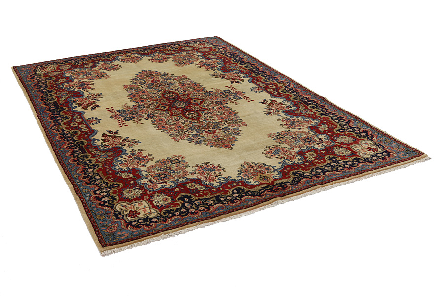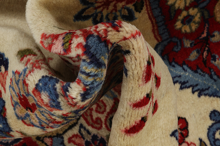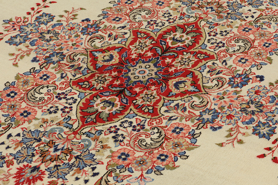 Rug weaving, an old tradition in Kerman, is one of the main industries of the city. The rugs produced in the city are renowned internationally. The oldest rug discovered in Kerman dates back 500 years, demonstrating the durabillity and quality of the rugs woven there. Also manufactured as in older times are other textile products made of cotton or wool, like shawls and delicate fabrics. Characteristic of Kerman rugs are the bright colours and the plentiness of beautiful flowers with garlands and medallions. The wool in Kerman is of very good quality with greasiness which makes it very bright.