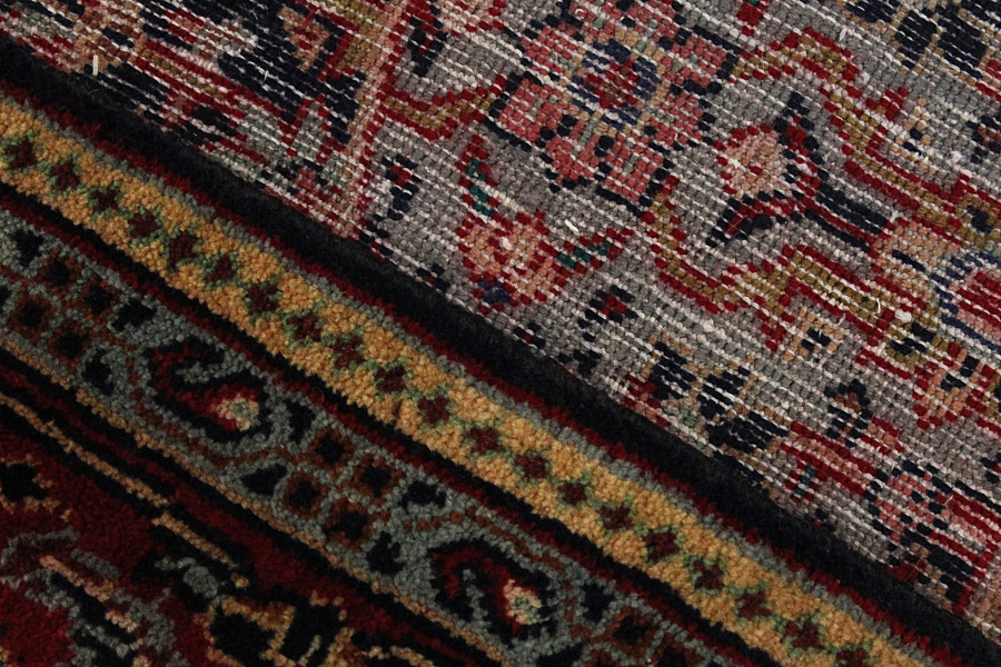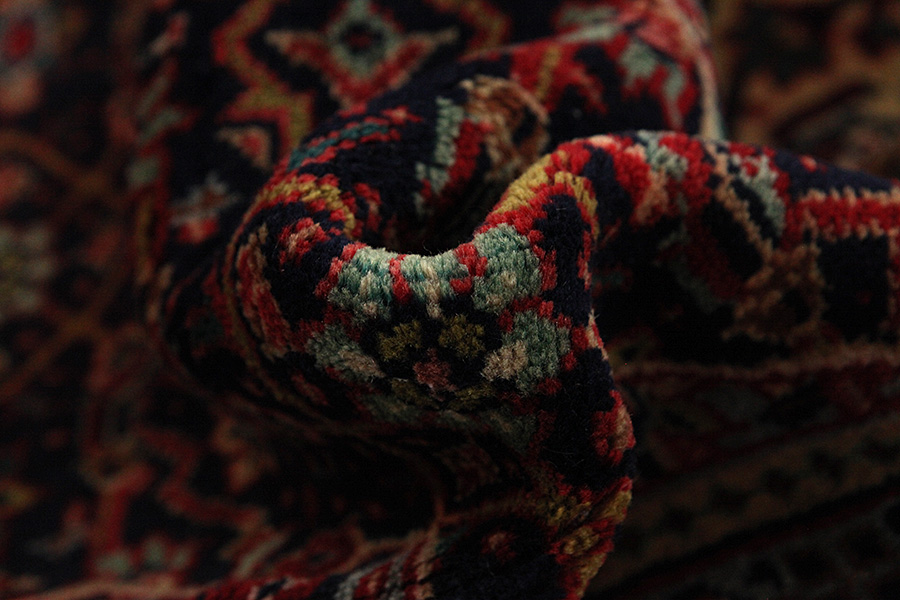 Abrash: Due to the different amount of grease in the wool and the added salt during the process of dyeing, the wool has got a varying colour absorbance. This is not very visible before weaving. During the weaving though, lines of the same colour are formed in the rug. This is called Abrash (which in Farsi means little cloud) and it shows that the wool was not manufactured using chemical means and marks the naturalness and authenticity of the rugs. Examples