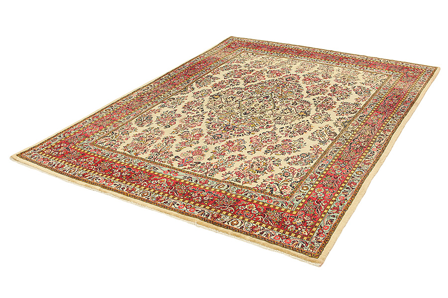 Sarouk is the name of rugs with a rich history, which are woven in the homonymous town as well as in the city of Arak and surrounding areas. Names of rugs from the Sarouk area are also: Feraghan, Feraghan Sarouk, Mahal, Mohajaran Sarouk, Mushkabad and Viss / Golpayegan. The first successes of Sarouk rugs and rugs were largely due to the U.S. market. The Sarouk still continue to be popular among Persian rugs and are made of very good quality wool. The designs are usually floral in style, in ivory beige and in shades of red and blue.