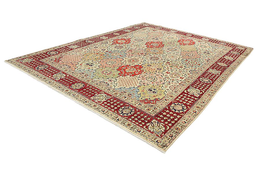 In the mountains Zagros, west of the city of Isfahan, around the town of Shahr-e-Kurd, live the nomads Bakhtiar. Their rugs are known for the design with various repeating squares in which flowers and animals are depicted. For this reason the design is called "garden"(Khesti). Their rugs are very durable with a dense weave and very good quality Persian wool coming from sheep grazing at a high altitude. The best Bakhtiari rugs with highest knot density are often called Bibibaff.