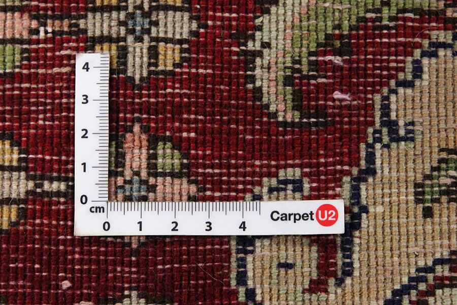 Abrash: Due to the different amount of grease in the wool and the added salt during the process of dyeing, the wool has got a varying colour absorbance. This is not very visible before weaving. During the weaving though, lines of the same colour are formed in the rug. This is called Abrash (which in Farsi means little cloud) and it shows that the wool was not manufactured using chemical means and marks the naturalness and authenticity of the rugs. Examples