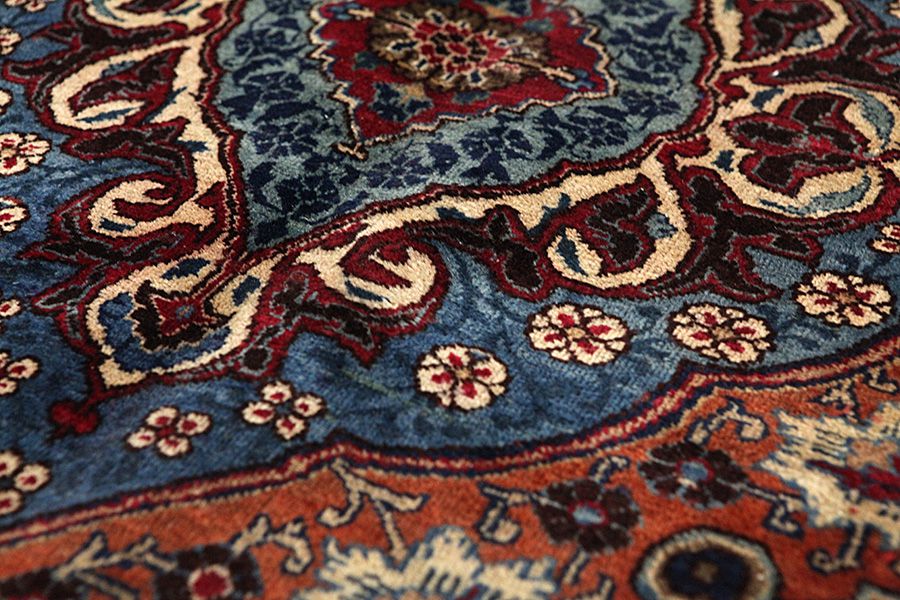 Mashad is known as the City of Ferdowsi the poet who wrote "Shahnameh", which is considered to be the national epic of Iran. It is also famous for its excellent quality wool. The old Mashad rugs were very good and had fine weave. For a time, due to the high manufacturing cost, quality did not meet the requirements of buyers and the demand had declined significantly. This happened until the mid-1950, when a significant improvement began. Their rugs started to look like works of art, with beautiful, tasteful, fine and detailed drawings. A great variety of flowers, "mir I botah", beautiful medallions and borders with garlands adorn Mashad rugs. The colours are almost always herbal. In Chorasan there are many krapprot which give a very sweet red.The Indigo blue is also the second of the main colours used. The knots used are senneh (Persian knot) and ghiordes (Turkish knot). The Mashad rugs called Turkbafs, in which the ghiordes knot is used, are of very high quality and aesthetics.