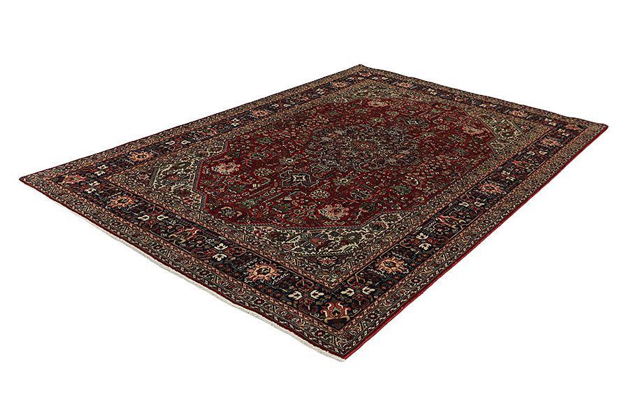 The city of Tabriz is the capital of Azerbaijan province in Northwestern Iran. Tabriz supplied the West with masterpieces that were made by renowned and very capable weavers. Their high quality of Tabriz rugs made them renowned in world markets. Many workshops where created where hand-woven rugs with very high density knots and high quality materials where woven. Silk and fine quality wool establish these rugs as very high class. No other city in Persia produced such large quantity or variety of rugs. With or without a medallion, their designs are full of imagination and individuality. Flowers, scenes, stanzas of poems often decorate them. Their predominant colours are beige, blue and red.