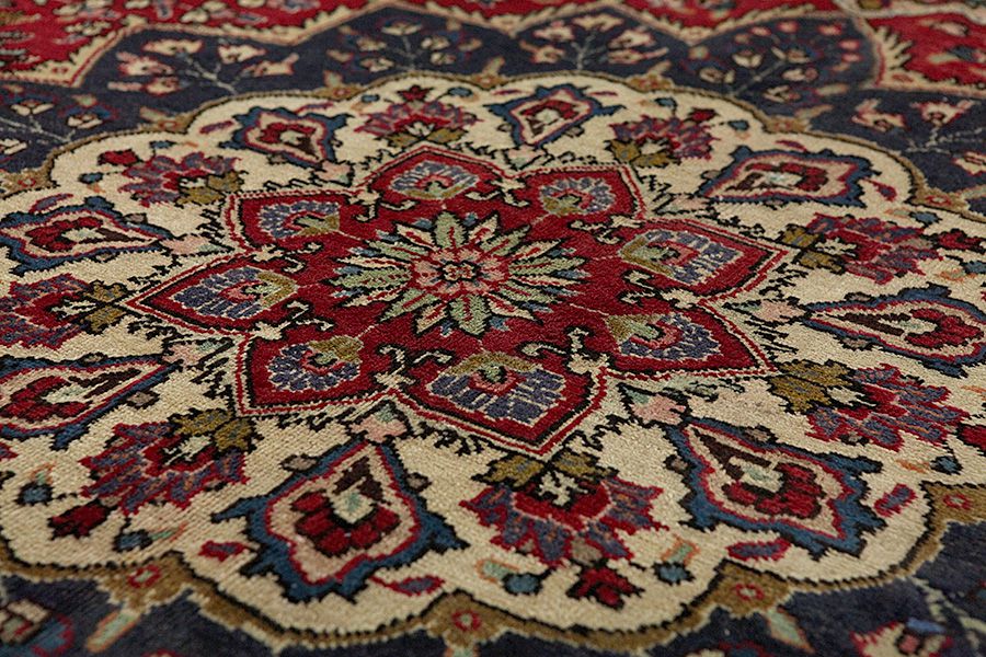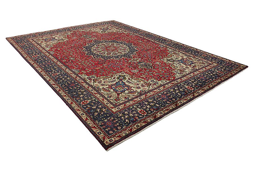 The city of Tabriz is the capital of Azerbaijan province in Northwestern Iran. Tabriz supplied the West with masterpieces that were made by renowned and very capable weavers. Their high quality of Tabriz rugs made them renowned in world markets. Many workshops where created where hand-woven rugs with very high density knots and high quality materials where woven. Silk and fine quality wool establish these rugs as very high class. No other city in Persia produced such large quantity or variety of rugs. With or without a medallion, their designs are full of imagination and individuality. Flowers, scenes, stanzas of poems often decorate them. Their predominant colours are beige, blue and red.