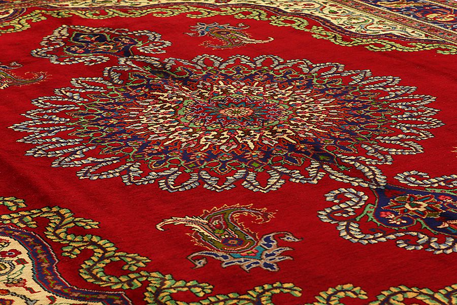 The city of Tabriz is the capital of Azerbaijan province in Northwestern Iran. Tabriz supplied the West with masterpieces that were made by renowned and very capable weavers. Their high quality of Tabriz rugs made them renowned in world markets. Many workshops where created where hand-woven rugs with very high density knots and high quality materials where woven. Silk and fine quality wool establish these rugs as very high class. No other city in Persia produced such large quantity or variety of rugs. With or without a medallion, their designs are full of imagination and individuality. Flowers, scenes, stanzas of poems often decorate them. Their predominant colours are beige, blue and red.