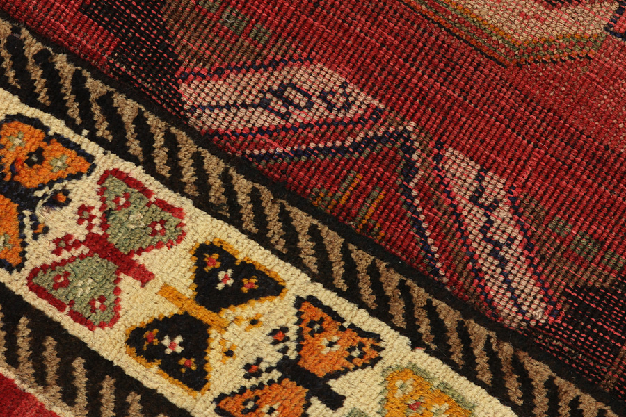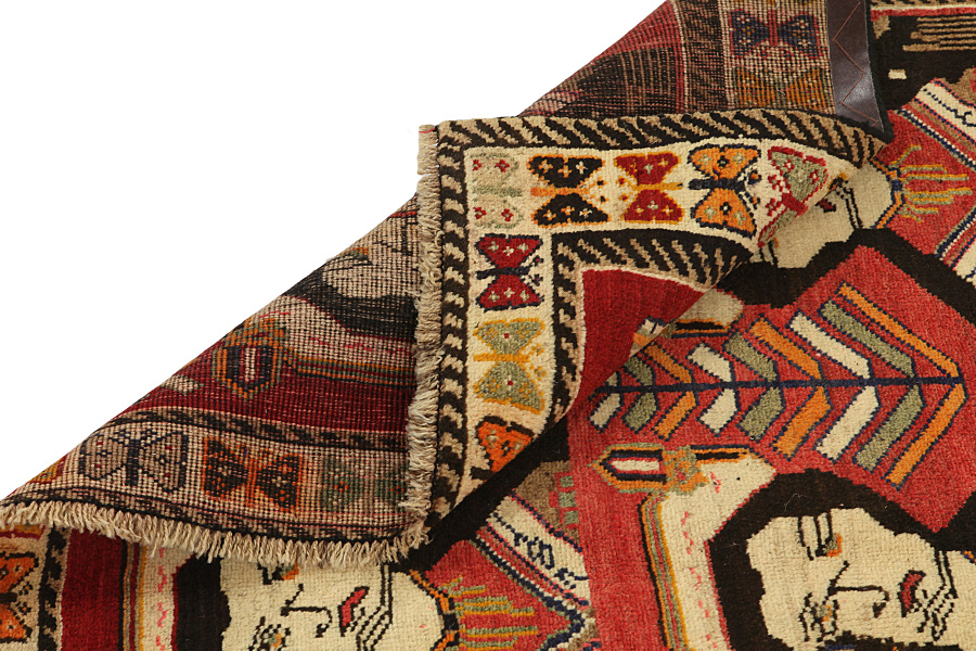 Qashqai rugs are woven by nomads who live in the mountainous areas of Southwest Persia, the provinces of Fars, Khuzestan, south of Isfahan and around the city Shiraz. Their rugs have a high knot density and a wide variety of designs, usually in deep red and blue colours. They weave rugs, Kilims and decorative textiles (ribbons, bags, etc.), which depict scenes from their lives with various representation of humans, animals, birds, trees and flowers.