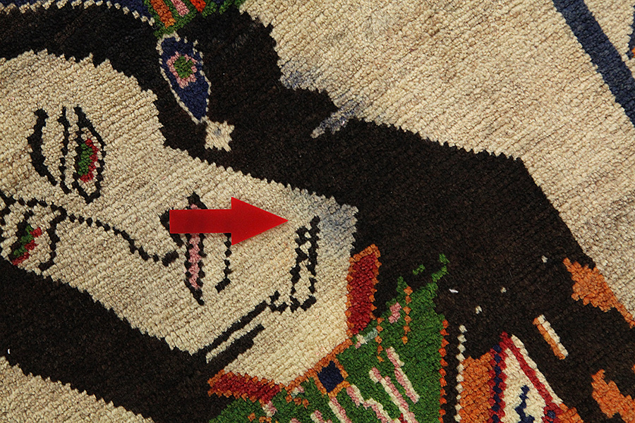 Abrash: Due to the different amount of grease in the wool and the added salt during the process of dyeing, the wool has got a varying colour absorbance. This is not very visible before weaving. During the weaving though, lines of the same colour are formed in the rug. This is called Abrash (which in Farsi means little cloud) and it shows that the wool was not manufactured using chemical means and marks the naturalness and authenticity of the rugs. Examples