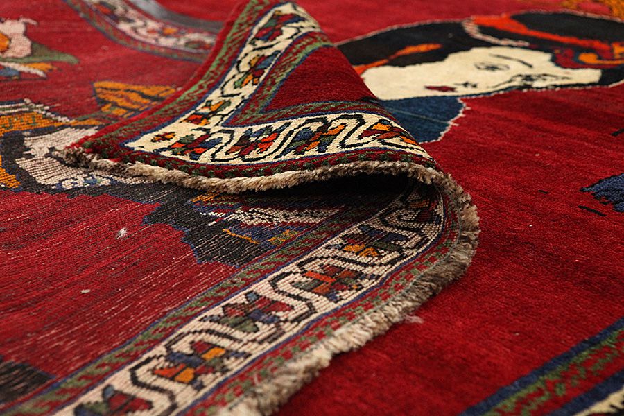 Qashqai rugs are woven by nomads who live in the mountainous areas of Southwest Persia, the provinces of Fars, Khuzestan, south of Isfahan and around the city Shiraz. Their rugs have a high knot density and a wide variety of designs, usually in deep red and blue colours. They weave rugs, Kilims and decorative textiles (ribbons, bags, etc.), which depict scenes from their lives with various representation of humans, animals, birds, trees and flowers.