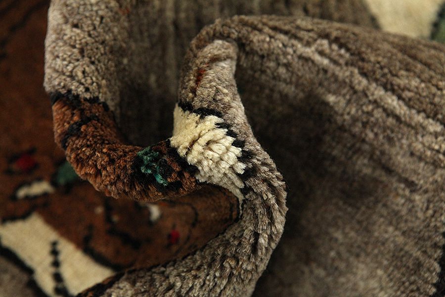 Gabbeh in Farsi means natural, primitive. Rugs and rugs with this name are woven by the nomads Qashqai who roam about, or in villages in Southwestern Iran where they live. The yarns are processed and twisted by hand, painted with herbal colours and woven with a wool warp up to 2 cm thick. These rugs are simple, with few designs, or monochrome. The simple, linear designs with animals and human figures give them a contemporary look. Various names are given to Gabbeh rugs such asBasic, Amalehbaft, Kashkooli, Luribaft and Sumak. Gabbeh Kashkooli is a rug with high knot density and thinner than ordinary Persian Gabbeh rugs. The Persian Gabbeh is very durable and its quality is very good.