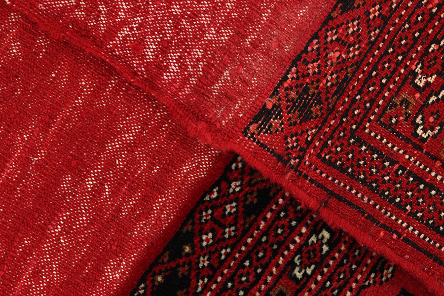 The Bokhara rugs are woven in Belutchistan and in different regions of Uzbekistan, Turkmenistan and Afghanistan. Turkmen rugs include Basjir, Salor, Tekke-Bochara, Jolam-Bocharaband, Ersari, Tjaudor and Yomut which are examples of the rug style called Bokhara. The deep red and the whole range of red from purple to brown are the dominant colours with repeating octagons, rhombi, yomut motifs being characteristic of these rugs. The warp of the rugs is always wool.