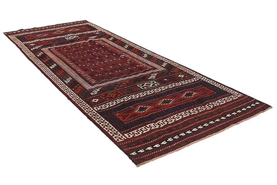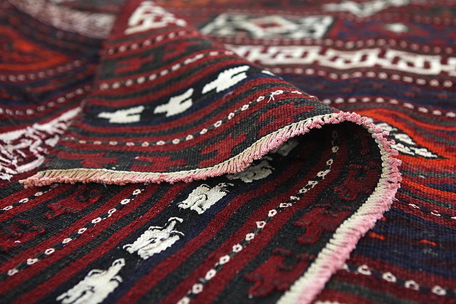 This is a particular type of Oriental flat woven rug without a pile (which preceded the pile rug) and is manufactured mainly by nomads in Persia, Afghanistan, Turkey and in various regions of the Caucasus. These textiles are rather small with a plain weave and no pile and they have got geometric patterns and rich colours. In order to weave them, natural materials like wool are used and sometimes silk for lightweight and delicate rugs. The colouring of yarns is done with plants and minerals that contribute to natural, beautiful colours. The long history of Kilim rugs goes back centuries to the nomads of Central Asia. Initially the rugs were mainly used in households and much later became commercial products, following the bloom of the oriental ruging during the 16th and 17th century. They have many applications and can be used on the floor, as toppings or for decorating walls. The name kilim is derived from the Persian word gelim. In Kurdish they are called Berr. The most famous Persian rugs are Sumakh, Senneh, Fars and Qashqai. Many Kilims are also woven at the border between Persia and Afghanistan by the nomads of Balouch with dark earthy indicative colours.