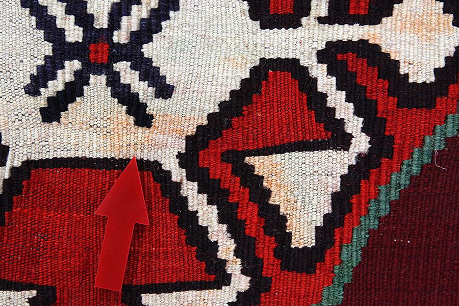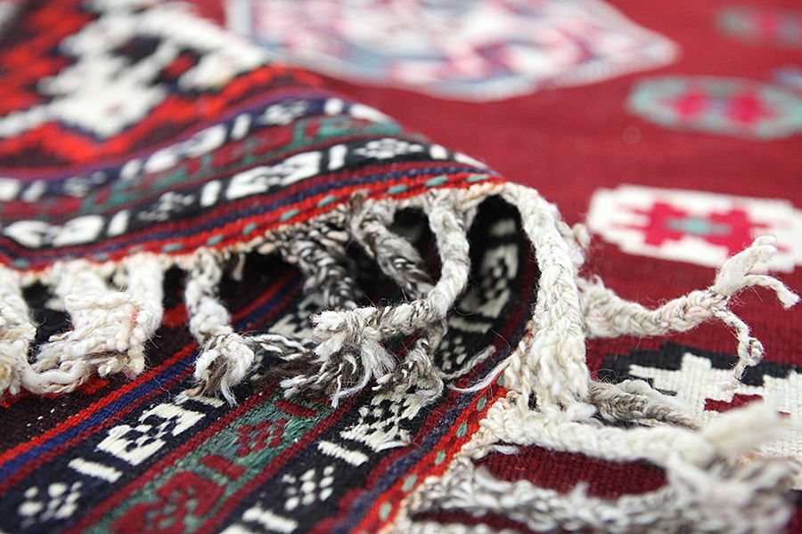 Flat woven at one or both ends of the rug's width: In some rugs the nomads weave at fringes on a narrow Kilim one or both sides of the width, or they weave them artistically into small braids. It is a technique various weavers use for a greater durability or simply to demonstrate their skill. Examples