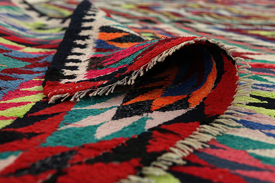 Flat woven at one or both ends of the rug's width: In some rugs the nomads weave at fringes on a narrow Kilim one or both sides of the width, or they weave them artistically into small braids. It is a technique various weavers use for a greater durability or simply to demonstrate their skill. Examples
