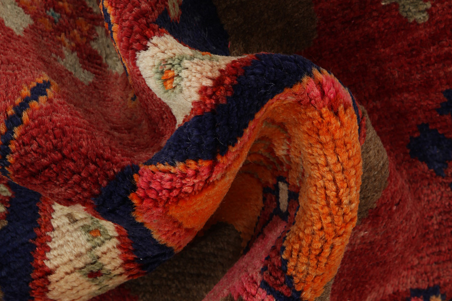 Abrash: Due to the different amount of grease in the wool and the added salt during the process of dyeing, the wool has got a varying colour absorbance. This is not very visible before weaving. During the weaving though, lines of the same colour are formed in the rug. This is called Abrash (which in Farsi means little cloud) and it shows that the wool was not manufactured using chemical means and marks the naturalness and authenticity of the rugs. Examples