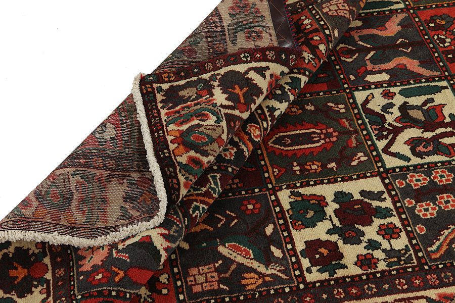 In the mountains Zagros, west of the city of Isfahan, around the town of Shahr-e-Kurd, live the nomads Bakhtiar. Their rugs are known for the design with various repeating squares in which flowers and animals are depicted. For this reason the design is called "garden"(Khesti). Their rugs are very durable with a dense weave and very good quality Persian wool coming from sheep grazing at a high altitude. The best Bakhtiari rugs with highest knot density are often called Bibibaff.