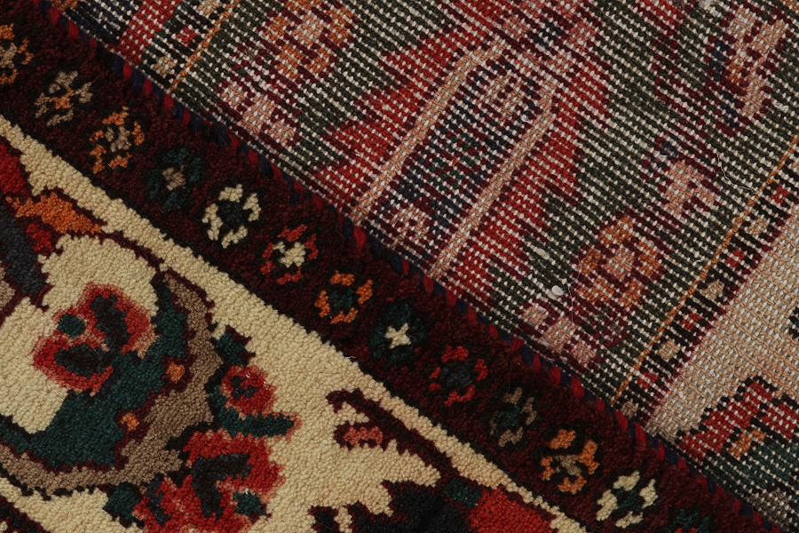 Abrash: Due to the different amount of grease in the wool and the added salt during the process of dyeing, the wool has got a varying colour absorbance. This is not very visible before weaving. During the weaving though, lines of the same colour are formed in the rug. This is called Abrash (which in Farsi means little cloud) and it shows that the wool was not manufactured using chemical means and marks the naturalness and authenticity of the rugs. Examples