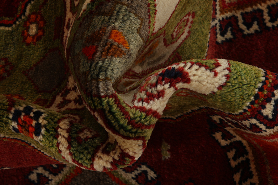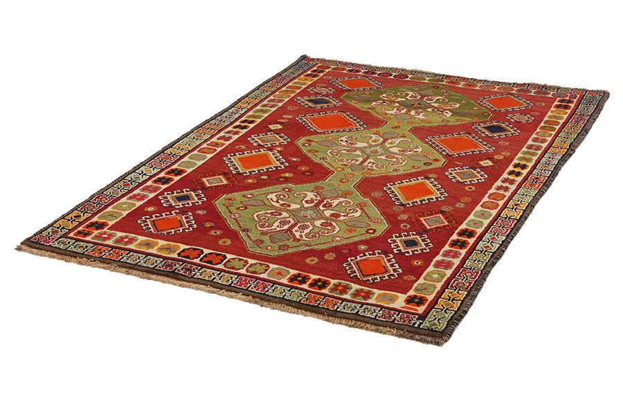 The name stands for the rugs woven by the Nomads Yalameh, who live in the province Fars in southern Persia. Their colours are usually red, dark blue, brown and orange. They use very soft wool. Their motifs are very characteristic with big, repeated medallion in geometric designs and figures of animals or human all over the rug. The Yalameh rugs look much alike the Shiraz rugs.