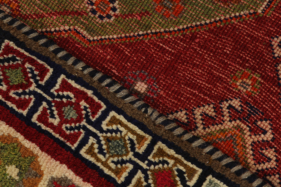 Abrash: Due to the different amount of grease in the wool and the added salt during the process of dyeing, the wool has got a varying colour absorbance. This is not very visible before weaving. During the weaving though, lines of the same colour are formed in the rug. This is called Abrash (which in Farsi means little cloud) and it shows that the wool was not manufactured using chemical means and marks the naturalness and authenticity of the rugs. Examples