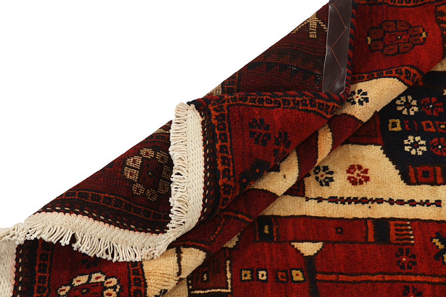 Rugs woven by the Lurs, a nomadic tribe in the mountainous Kurdish region of Southwest Iran, bordering Iraq. The Lori rugs usually have geometric shapes, often with rhombi and strictly linear scenes of the herbal and animal world. Because the areas where the Lurs live are inaccessible and isolated, they still weave with the old traditional ways, without influences from the Europeans. The centre of Luristan is Choremabad, which gave its name to the rugs woven there. Furthermore rugs have been named after the salt lake Neris.