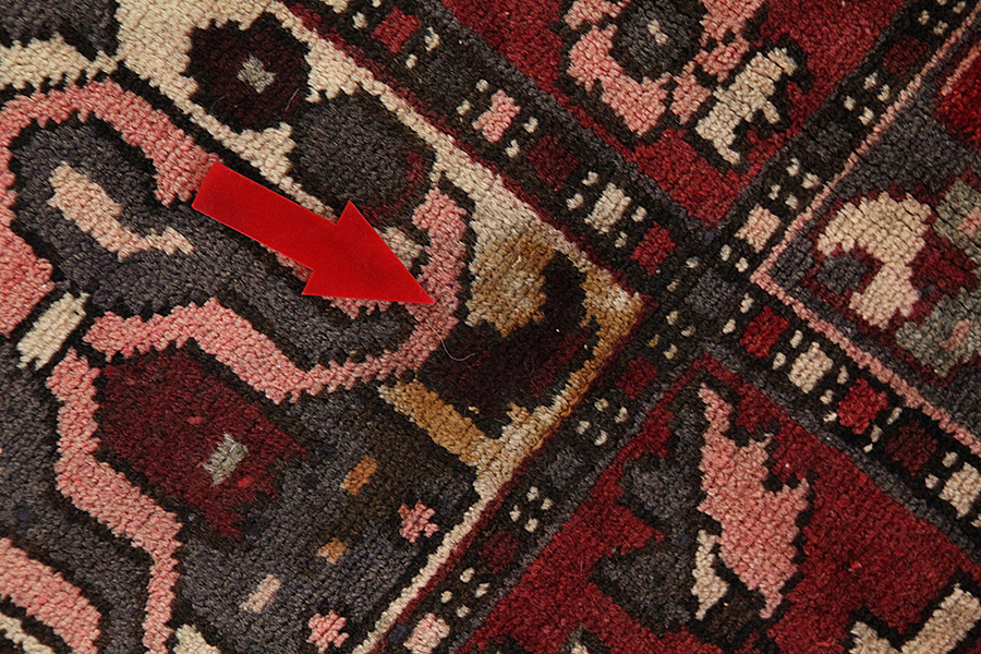 The colour of the rug has faded in a small part of the pile