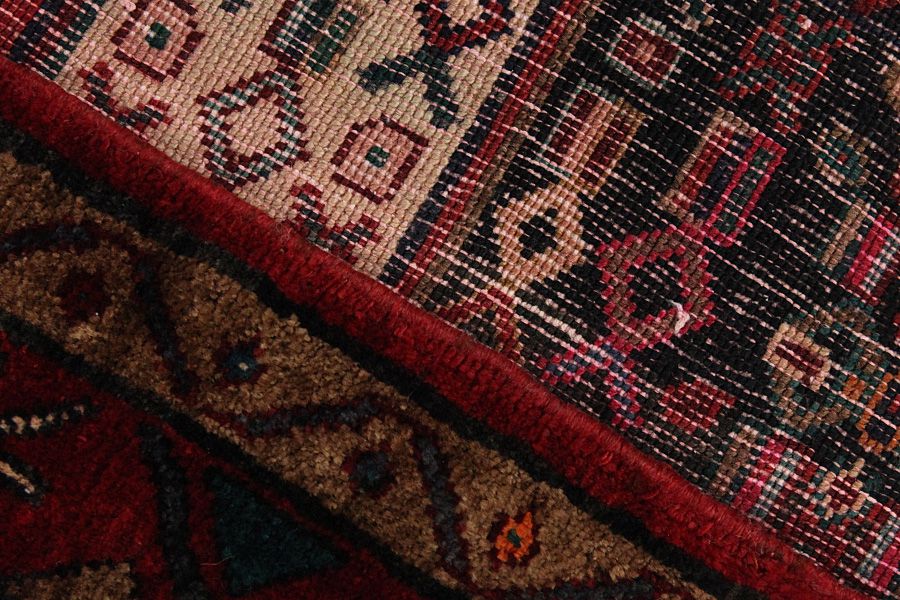 Abrash: Due to the different amount of grease in the wool and the added salt during the process of dyeing, the wool has got a varying colour absorbance. This is not very visible before weaving. During the weaving though, lines of the same colour are formed in the rug. This is called Abrash (which in Farsi means little cloud) and it shows that the wool was not manufactured using chemical means and marks the naturalness and authenticity of the rugs. Examples