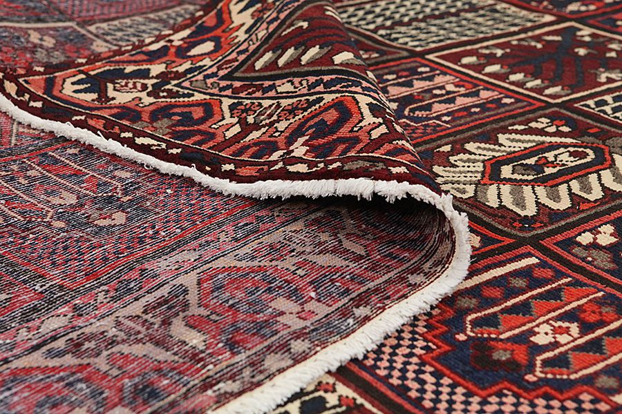 In the mountains Zagros, west of the city of Isfahan, around the town of Shahr-e-Kurd, live the nomads Bakhtiar. Their rugs are known for the design with various repeating squares in which flowers and animals are depicted. For this reason the design is called "garden"(Khesti). Their rugs are very durable with a dense weave and very good quality Persian wool coming from sheep grazing at a high altitude. The best Bakhtiari rugs with highest knot density are often called Bibibaff.