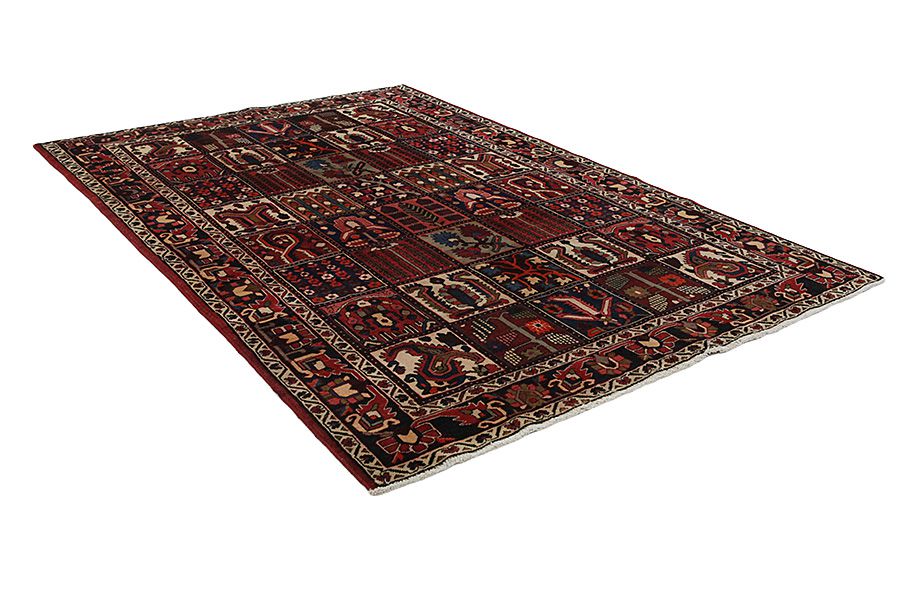 In the mountains Zagros, west of the city of Isfahan, around the town of Shahr-e-Kurd, live the nomads Bakhtiar. Their rugs are known for the design with various repeating squares in which flowers and animals are depicted. For this reason the design is called "garden"(Khesti). Their rugs are very durable with a dense weave and very good quality Persian wool coming from sheep grazing at a high altitude. The best Bakhtiari rugs with highest knot density are often called Bibibaff.