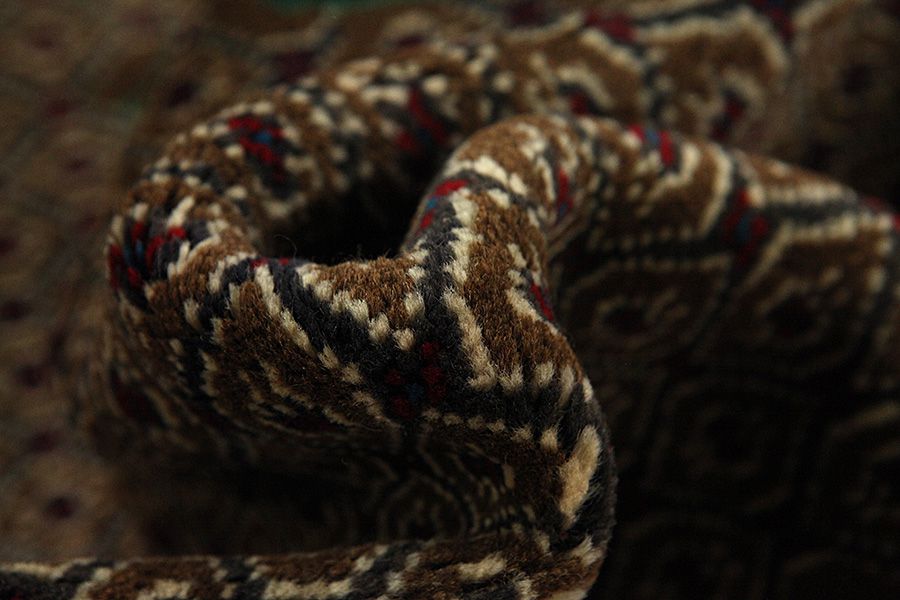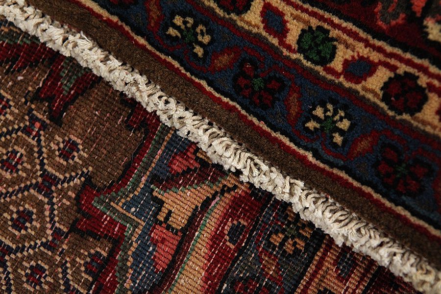 Abrash: Due to the different amount of grease in the wool and the added salt during the process of dyeing, the wool has got a varying colour absorbance. This is not very visible before weaving. During the weaving though, lines of the same colour are formed in the rug. This is called Abrash (which in Farsi means little cloud) and it shows that the wool was not manufactured using chemical means and marks the naturalness and authenticity of the rugs. Examples