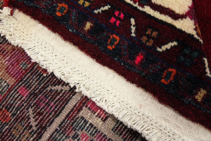 Abrash: Due to the different amount of grease in the wool and the added salt during the process of dyeing, the wool has got a varying colour absorbance. This is not very visible before weaving. During the weaving though, lines of the same colour are formed in the rug. This is called Abrash (which in Farsi means little cloud) and it shows that the wool was not manufactured using chemical means and marks the naturalness and authenticity of the rugs. Examples