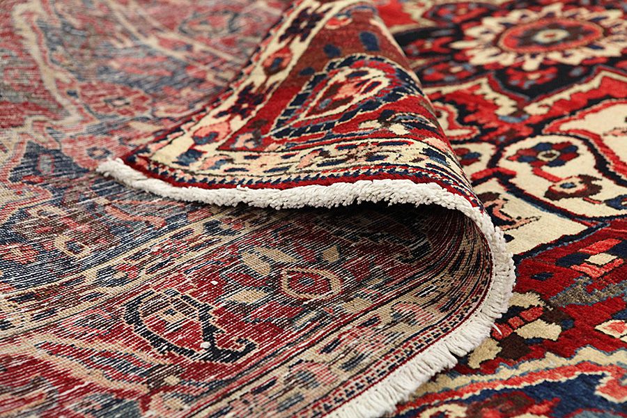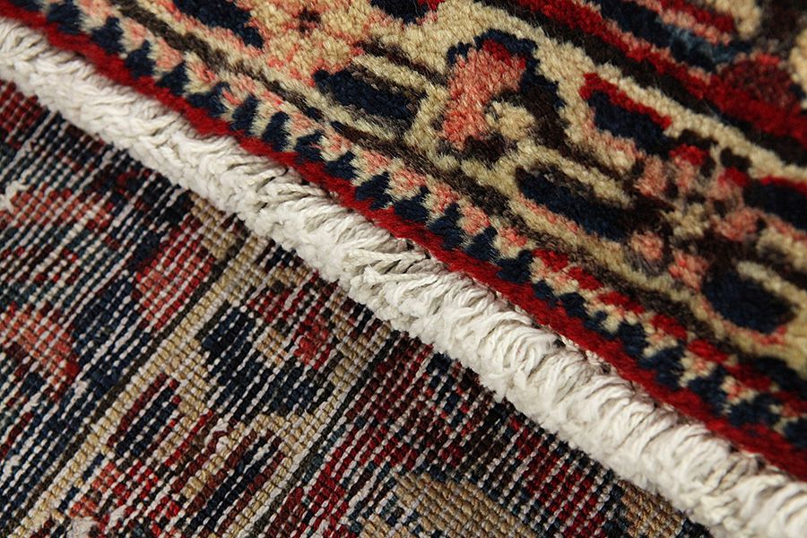 Abrash: Due to the different amount of grease in the wool and the added salt during the process of dyeing, the wool has got a varying colour absorbance. This is not very visible before weaving. During the weaving though, lines of the same colour are formed in the rug. This is called Abrash (which in Farsi means little cloud) and it shows that the wool was not manufactured using chemical means and marks the naturalness and authenticity of the rugs. Examples
