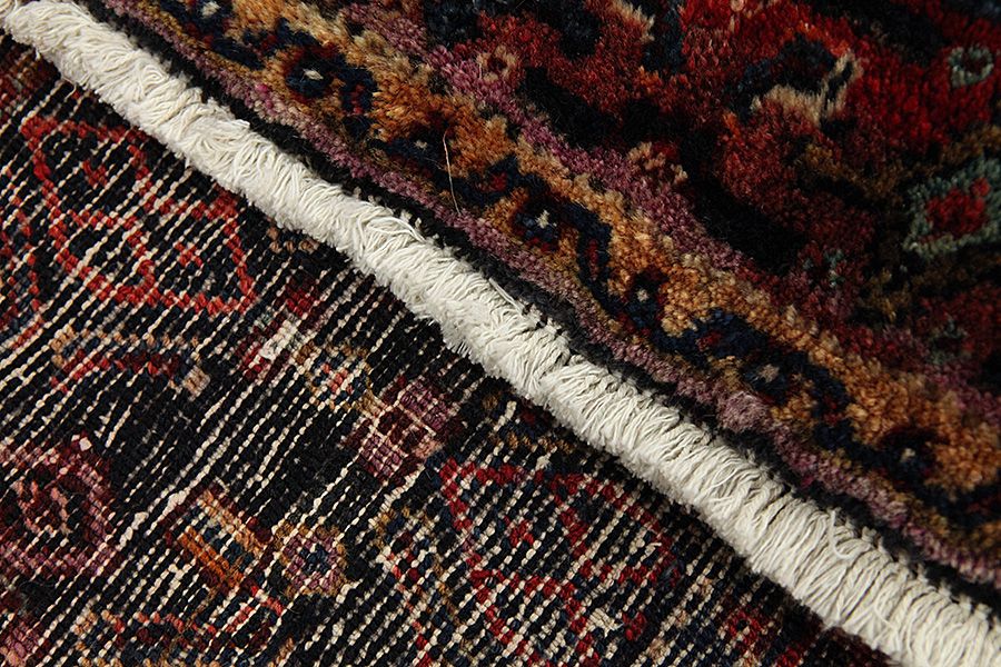 Abrash: Due to the different amount of grease in the wool and the added salt during the process of dyeing, the wool has got a varying colour absorbance. This is not very visible before weaving. During the weaving though, lines of the same colour are formed in the rug. This is called Abrash (which in Farsi means little cloud) and it shows that the wool was not manufactured using chemical means and marks the naturalness and authenticity of the rugs. Examples