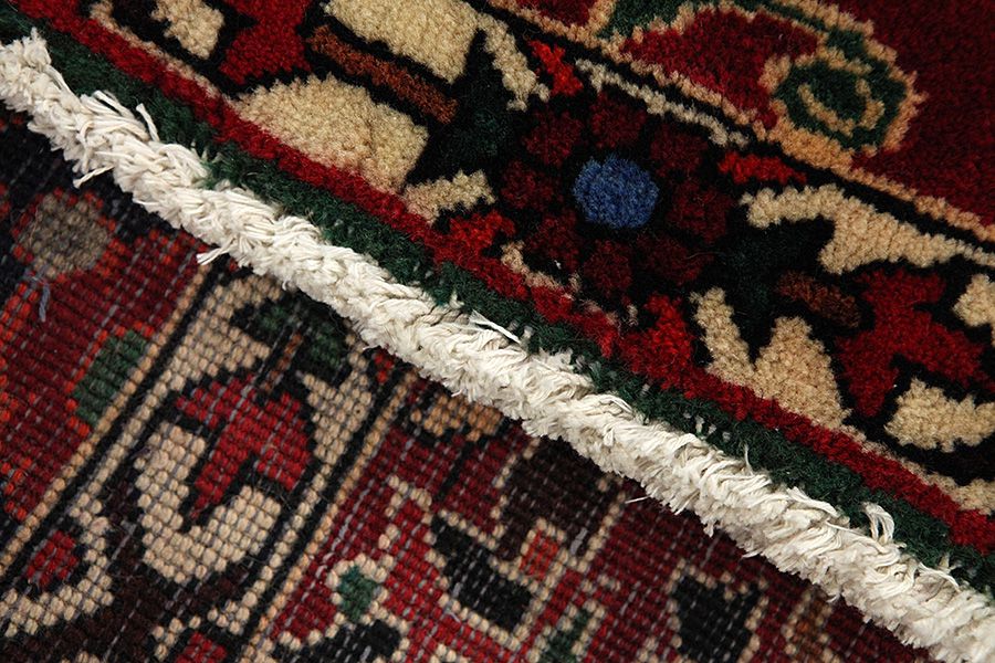 Abrash: Due to the different amount of grease in the wool and the added salt during the process of dyeing, the wool has got a varying colour absorbance. This is not very visible before weaving. During the weaving though, lines of the same colour are formed in the rug. This is called Abrash (which in Farsi means little cloud) and it shows that the wool was not manufactured using chemical means and marks the naturalness and authenticity of the rugs. Examples