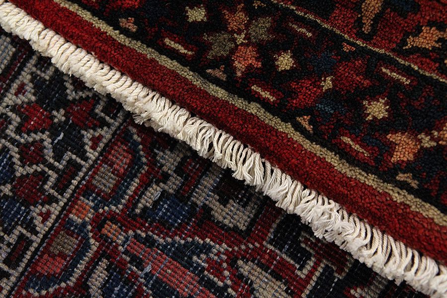 Abrash: Due to the different amount of grease in the wool and the added salt during the process of dyeing, the wool has got a varying colour absorbance. This is not very visible before weaving. During the weaving though, lines of the same colour are formed in the rug. This is called Abrash (which in Farsi means little cloud) and it shows that the wool was not manufactured using chemical means and marks the naturalness and authenticity of the rugs. Examples