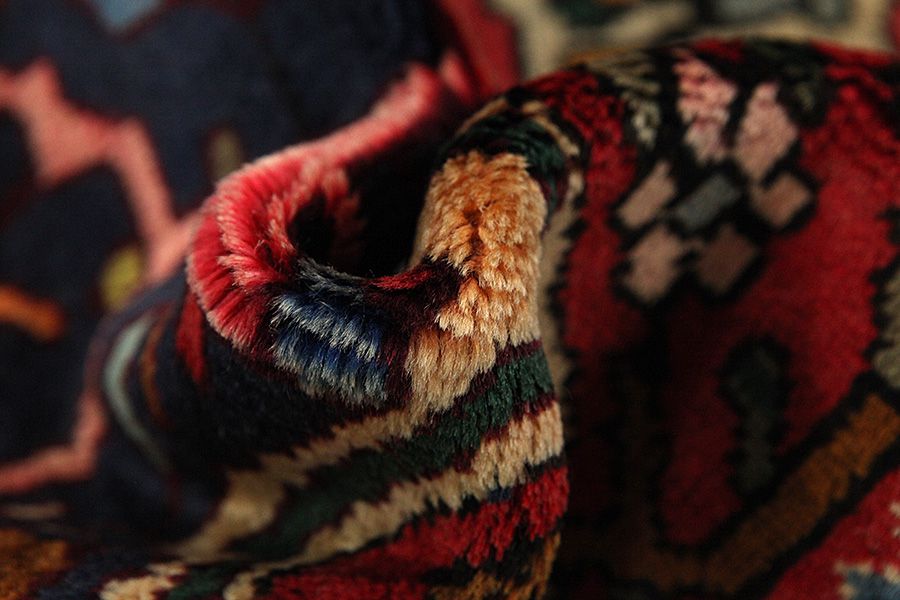 Abrash: Due to the different amount of grease in the wool and the added salt during the process of dyeing, the wool has got a varying colour absorbance. This is not very visible before weaving. During the weaving though, lines of the same colour are formed in the rug. This is called Abrash (which in Farsi means little cloud) and it shows that the wool was not manufactured using chemical means and marks the naturalness and authenticity of the rugs. Examples