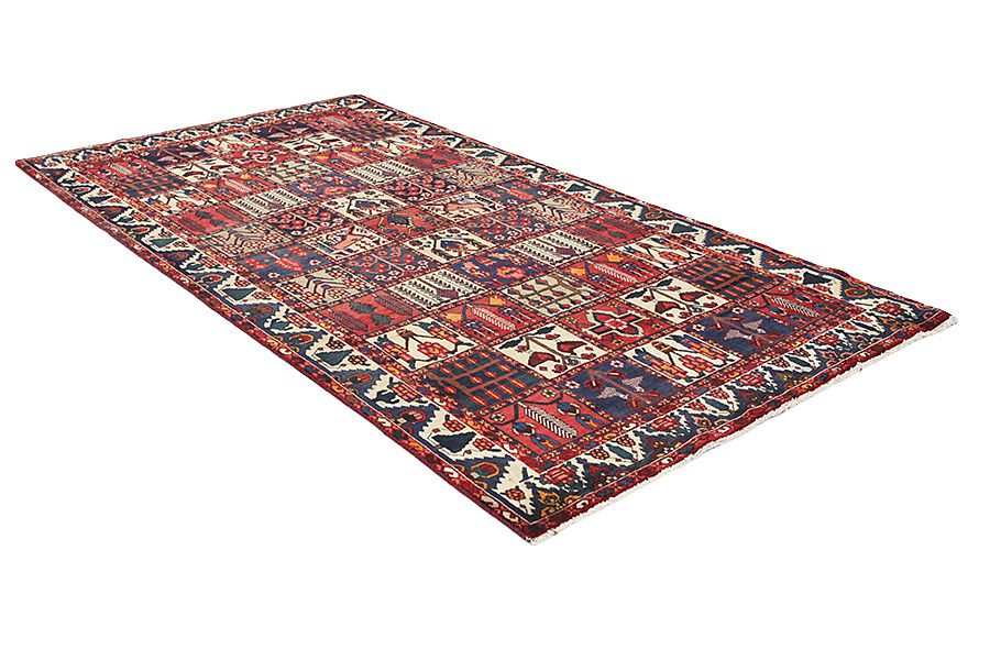In the mountains Zagros, west of the city of Isfahan, around the town of Shahr-e-Kurd, live the nomads Bakhtiar. Their rugs are known for the design with various repeating squares in which flowers and animals are depicted. For this reason the design is called "garden"(Khesti). Their rugs are very durable with a dense weave and very good quality Persian wool coming from sheep grazing at a high altitude. The best Bakhtiari rugs with highest knot density are often called Bibibaff.