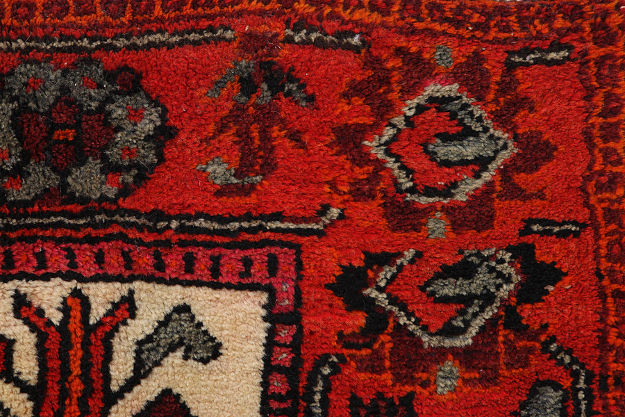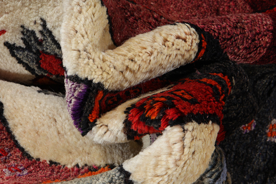 Abrash: Due to the different amount of grease in the wool and the added salt during the process of dyeing, the wool has got a varying colour absorbance. This is not very visible before weaving. During the weaving though, lines of the same colour are formed in the rug. This is called Abrash (which in Farsi means little cloud) and it shows that the wool was not manufactured using chemical means and marks the naturalness and authenticity of the rugs. Examples