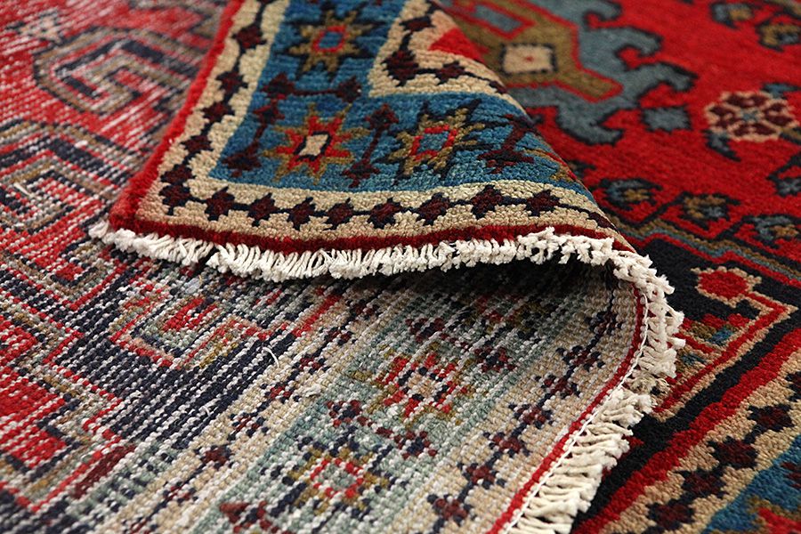 Abrash: Due to the different amount of grease in the wool and the added salt during the process of dyeing, the wool has got a varying colour absorbance. This is not very visible before weaving. During the weaving though, lines of the same colour are formed in the rug. This is called Abrash (which in Farsi means little cloud) and it shows that the wool was not manufactured using chemical means and marks the naturalness and authenticity of the rugs. Examples