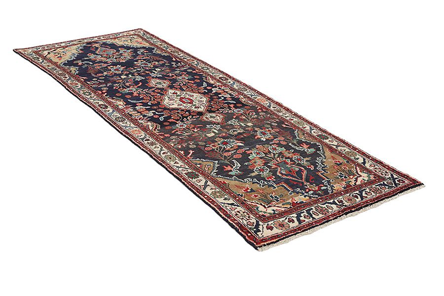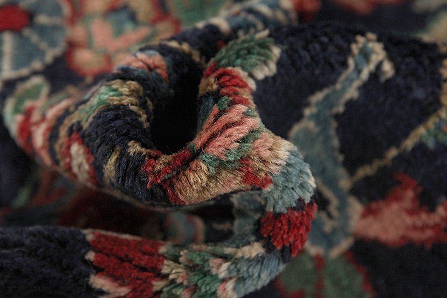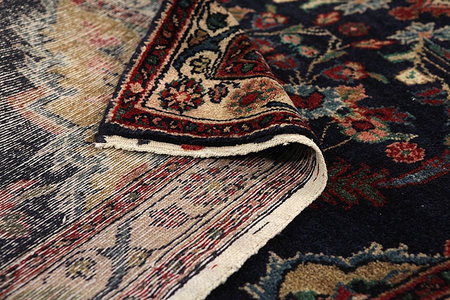 The area Farahan is located in Central Iran, about 580 km south of Tehran between the cities Arak, Qum and Kashan. Nowadays, in Western countries Farahan rugs are also known as Mahal. These rugs have solid construction and fine designs. To create them mineral colours are used that give a copper-rust green colour. They often have got a blue background in the pile, with repeating Herati designs and a medallion that is surrounded by roses and other flowers with delicate lines in a variety of colours. Their wool is soft and of very good quality, which allows for a very fine and tight weave.
