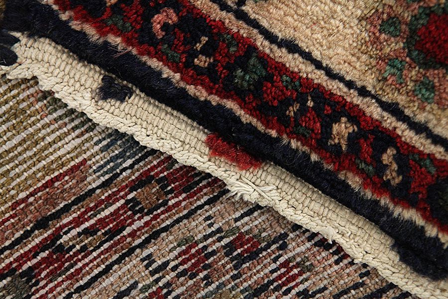 Abrash: Due to the different amount of grease in the wool and the added salt during the process of dyeing, the wool has got a varying colour absorbance. This is not very visible before weaving. During the weaving though, lines of the same colour are formed in the rug. This is called Abrash (which in Farsi means little cloud) and it shows that the wool was not manufactured using chemical means and marks the naturalness and authenticity of the rugs. Examples