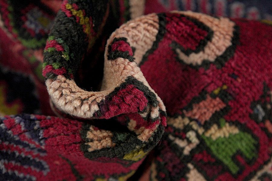 Abrash: Due to the different amount of grease in the wool and the added salt during the process of dyeing, the wool has got a varying colour absorbance. This is not very visible before weaving. During the weaving though, lines of the same colour are formed in the rug. This is called Abrash (which in Farsi means little cloud) and it shows that the wool was not manufactured using chemical means and marks the naturalness and authenticity of the rugs. Examples