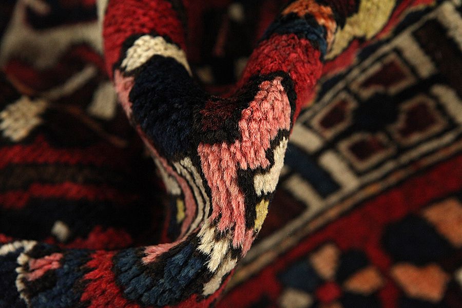Abrash: Due to the different amount of grease in the wool and the added salt during the process of dyeing, the wool has got a varying colour absorbance. This is not very visible before weaving. During the weaving though, lines of the same colour are formed in the rug. This is called Abrash (which in Farsi means little cloud) and it shows that the wool was not manufactured using chemical means and marks the naturalness and authenticity of the rugs. Examples