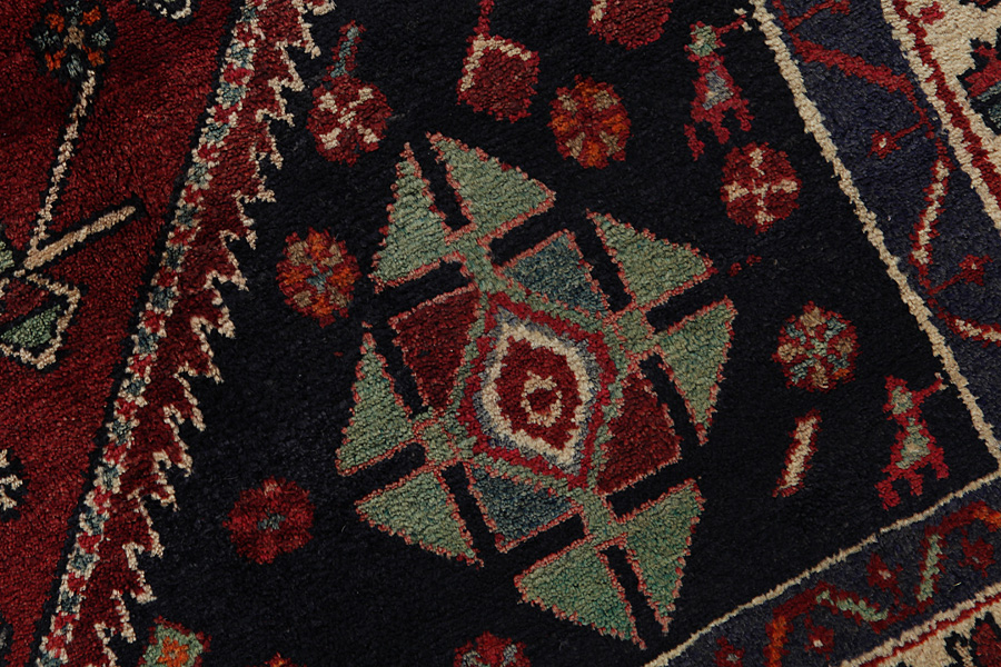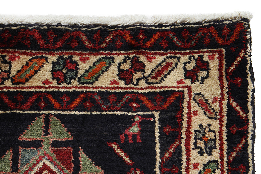 Qashqai rugs are woven by nomads who live in the mountainous areas of Southwest Persia, the provinces of Fars, Khuzestan, south of Isfahan and around the city Shiraz. Their rugs have a high knot density and a wide variety of designs, usually in deep red and blue colours. They weave rugs, Kilims and decorative textiles (ribbons, bags, etc.), which depict scenes from their lives with various representation of humans, animals, birds, trees and flowers.